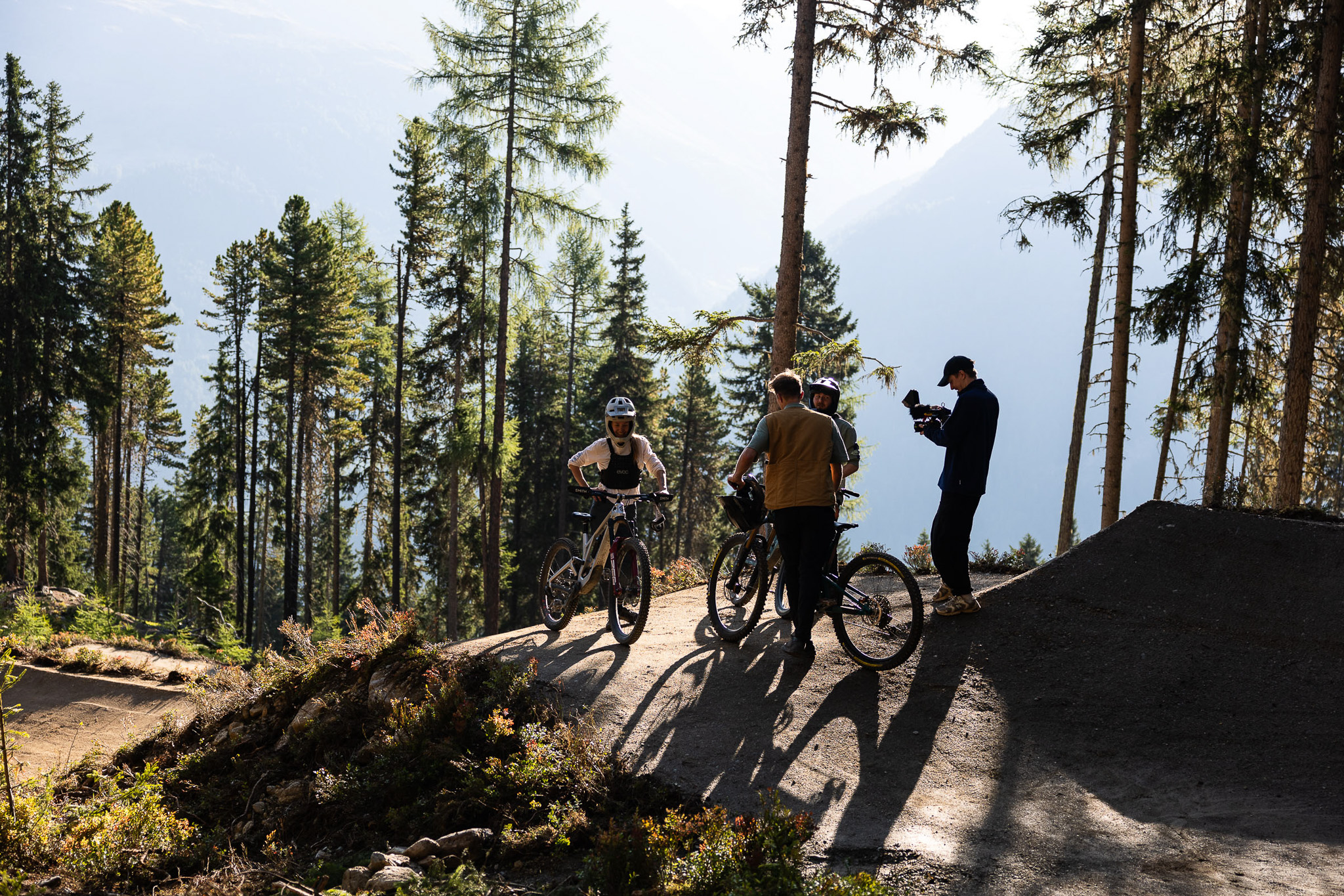 Nach einer ausgiebigen Session und unzähligen Schlenkerla später ging es für uns weiter nach Österreich. Dort haben uns Katrin Stöhr und Konstantin Ottner empfangen und uns die kniffligen Spitzkehren-Trails gezeigt. Am nächsten Tag ergab sich spontan die Möglichkeit, die neue, noch nicht zugängliche Jumpline der Bike Republic Sölden zu testen. So eine Chance lehnt man selbstverständlich nicht ab – also stand eine Jumpsession auf dem Tagesplan.